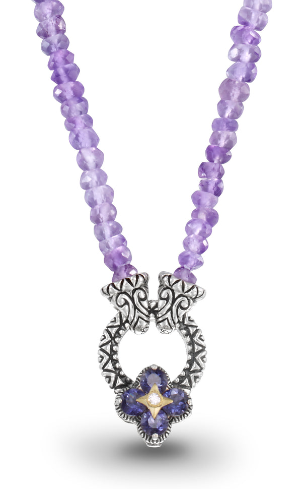 $1,175.00 $1,057.50Pink Amethyst Necklace – Diamond & Iolite