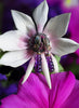 Sterling silver and 18K yellow gold, black diamond, black mother of pearl, pink sapphire and amethyst drop butterfly earrings from the Zen Garden Collection. Earrings features carved black mother of pearl butterfly wings with faceted pave black diamond border, pink sapphire butterfly body center and faceted amethyst bead drops.