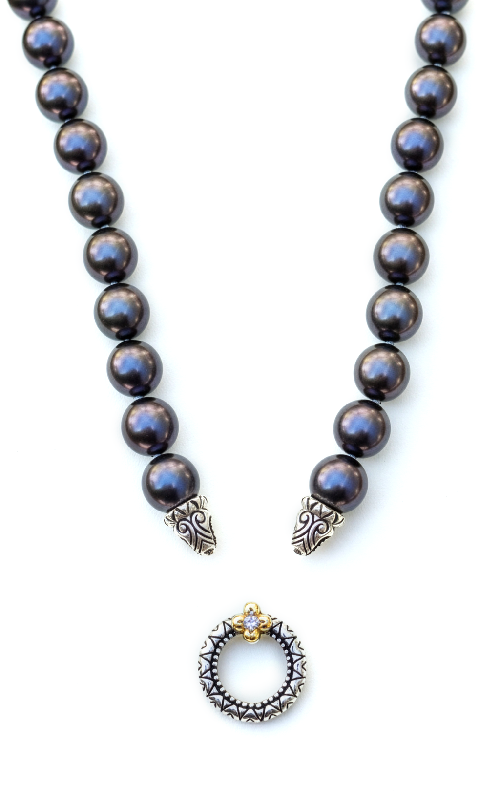 Sterling silver and black freshwater pearl necklace from the Signature Collection. The necklace features lustrous 8mm round black freshwater pearls. Available in 16", 18 or 20”. The necklace needs to be worn with open circle clasp—sold separately.