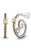 Sterling silver and 18K gold hoop earrings with citrine, featuring Barbara Bixby's signature 18K gold flower with center diamond and lotus petal carving. Posts and clutches, for pierced ears only.